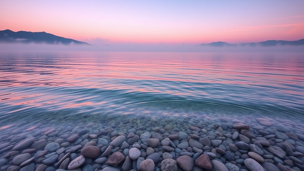 Yes, different water bodies often symbolize specific emotions through emotional symbolism and cultural interpretations. For example, rivers may represent life’s flow and change, lakes can signify tranquility or emotional depth, and oceans often symbolize vast, unconscious feelings. Your personal experiences and cultural background influence these symbols, so pay attention to how each water body makes you feel, as it can reveal your inner emotional state and subconscious thoughts.