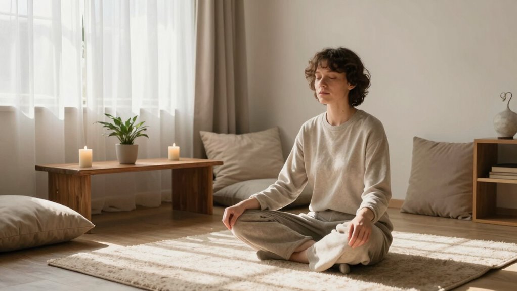 If you dislike sitting still, start with just five minutes of meditation, gradually increasing as you feel comfortable. Imagine Sarah, who found mindfulness distractions less overwhelming by meditating while walking. Pay attention to your posture preferences—whether lying down or standing—and choose what feels best. Short, consistent sessions help build your practice without frustration, making it easier to stay committed and experience the calming benefits of meditation.