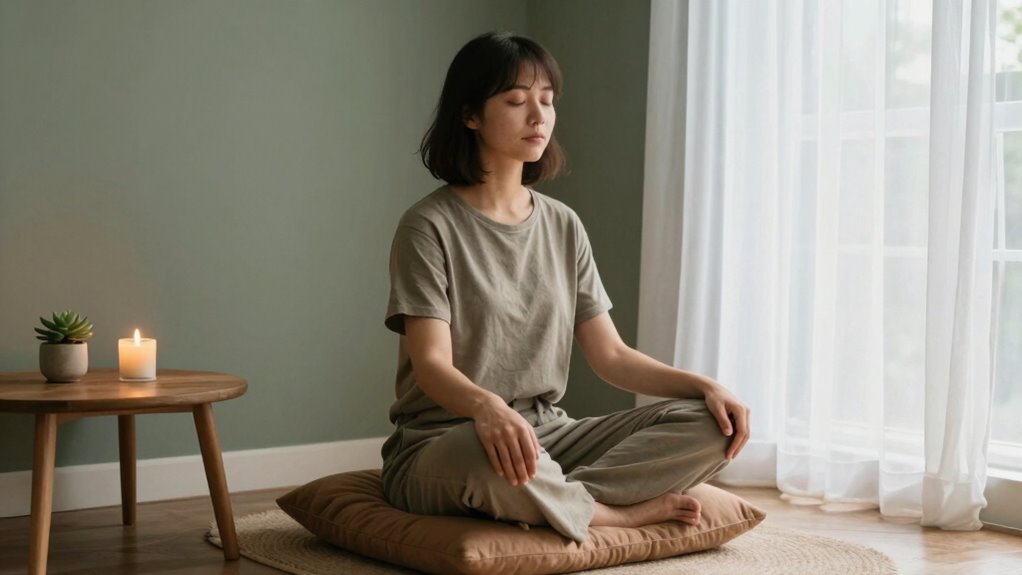 In essence, meditation isn’t just about relaxation; it’s a practical tool for combatting decision fatigue. By practicing mindfulness techniques regularly, you strengthen your mental clarity, enabling you to make better decisions with less effort. It’s a simple yet powerful way to preserve your cognitive resources and maintain control over your mental state, especially during busy, decision-heavy days. Incorporating strategies from landscaping and creating a calming environment can further support your mental clarity and overall well-being.