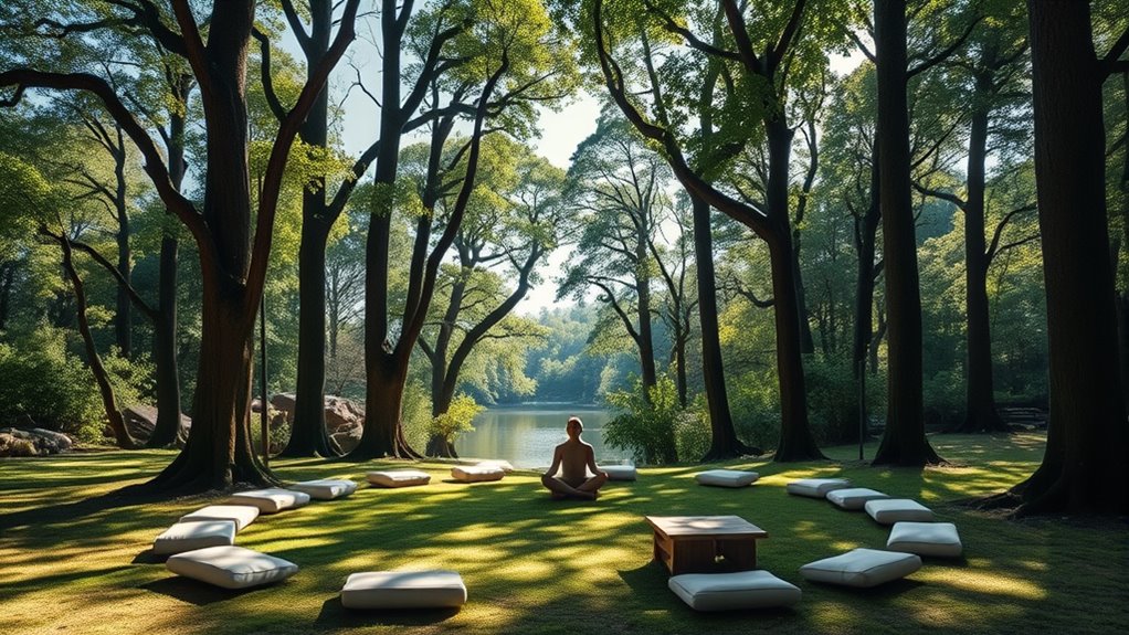 Meditation retreats offer a dedicated space for you to disconnect from daily stress and deepen your practice. When you arrive, you’ll find yourself immersed in an environment designed to foster focus, calm, and self-awareness. One of the key elements of a successful retreat is understanding mindfulness techniques, which are often taught and practiced throughout your stay. These techniques help you stay present in the moment, letting go of worries about the past or future. You might learn breath awareness, body scans, or gentle walking meditations that encourage you to anchor your attention. As you progress, you’ll notice how these practices become natural tools for cultivating inner peace and clarity. Incorporating essential oils for relaxation can enhance your mindfulness experience by creating a calming atmosphere during meditation sessions. Preparing for your retreat involves thoughtful retreat preparations to ensure you get the most out of your experience. Before you leave, it’s wise to set clear intentions—whether it’s to reduce stress, gain insight, or simply disconnect from technology. Packing appropriately is also crucial; comfortable clothing, a journal, and any personal items that support your practice can make a difference. It’s helpful to familiarize yourself with the schedule and rules of the retreat beforehand, so you feel comfortable and ready to engage. Many retreats recommend abstaining from alcohol, caffeine, or other distractions to deepen your mindfulness practice and maintain a focused mindset. During the retreat, you’ll participate in daily meditation sessions, often multiple times a day, led by experienced teachers. These sessions may include guided meditations, silent sitting periods, or group discussions. The setting is usually serene, whether it’s nestled in nature or a quiet retreat center, encouraging you to let go of external distractions. You’ll learn to cultivate patience and acceptance, often through mindfulness techniques that promote non-judgmental awareness. As you settle into the routines, you might find your mind becoming clearer, your stress melting away, and your emotional resilience strengthening. Throughout your stay, you’ll be encouraged to maintain a simple, mindful lifestyle—eating nourishing meals, engaging in gentle movement, and taking time for reflection. These activities complement your meditation practice and help integrate the lessons learned. When the retreat concludes, you’ll leave with practical tools and renewed energy to incorporate mindfulness into daily life. The experience often leaves you feeling more centered, balanced, and equipped to handle life’s challenges with greater ease. Ultimately, a meditation retreat offers not just a break, but an opportunity to develop lasting habits of mindfulness that can transform your overall well-being.