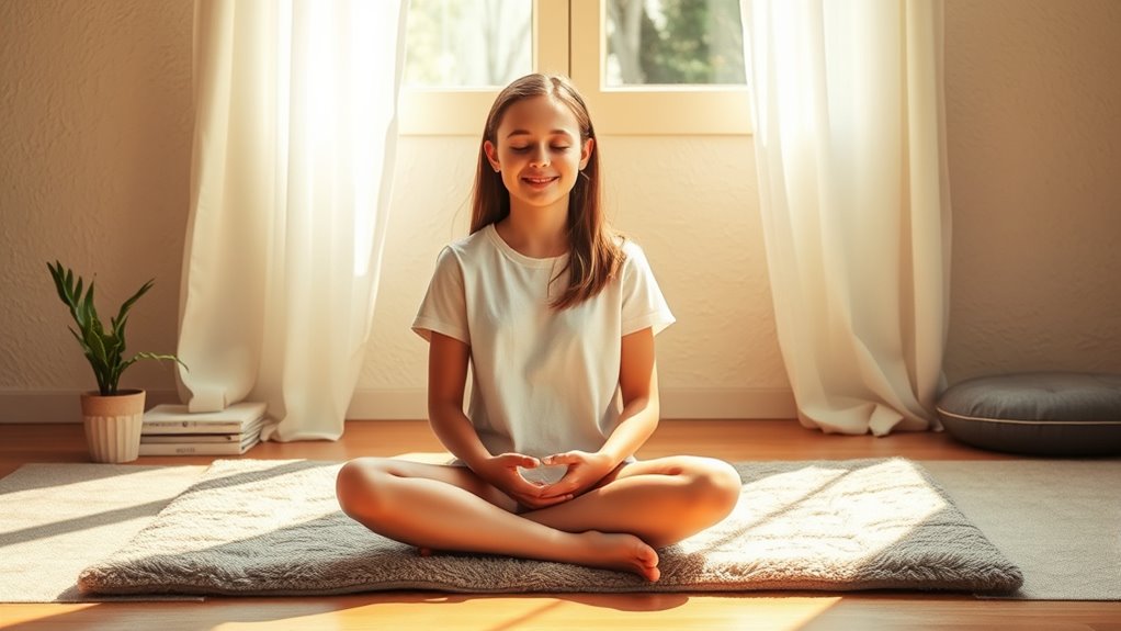 Mindfulness meditation for teens helps you manage stress, control your emotions, and stay calm during tough times. By focusing on your breathing, body sensations, or surroundings, you learn to accept your feelings without judgment. Regular practice can strengthen your ability to stay present and make thoughtful choices instead of reacting impulsively. If you’re curious about ways to develop resilience and improve your mood, there’s more to discover about how mindfulness can truly support you daily.