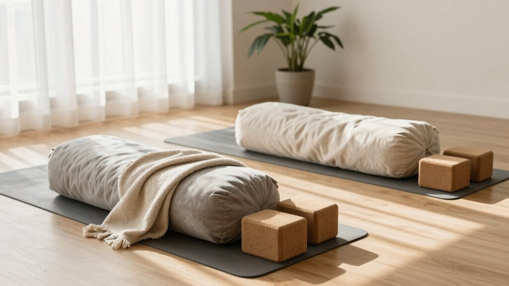 Using restorative yoga props truly transforms your practice by deepening relaxation and easing tension. Think of props as your supportive friends, holding you gently and allowing your body to surrender fully. Imagine a hammock cradling you—giving your muscles and mind the space to unwind effortlessly. When you embrace props, you’re not just practicing yoga; you’re creating a visual image of comfort and stability that encourages your body to relax and rejuvenate completely.