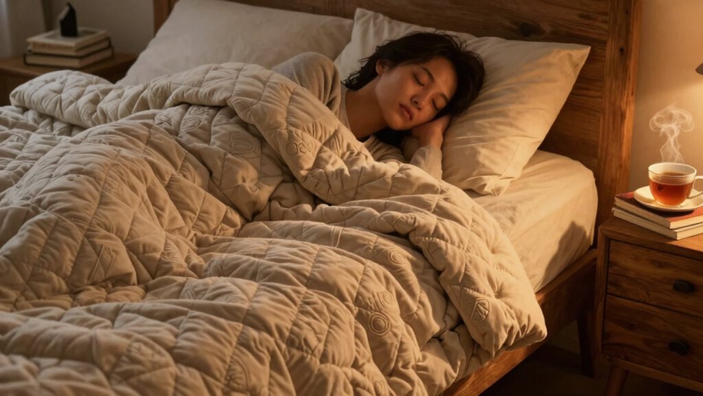 Weighted blankets can be a helpful alternative therapy for easing anxiety, but they shouldn’t fully replace medication without consulting your healthcare provider. They work by providing calming techniques that promote deep pressure touch, helping you feel more secure and relaxed. While many find them effective, it is crucial to discuss with a professional to determine if they complement your treatment plan or if medication remains necessary for your specific needs.