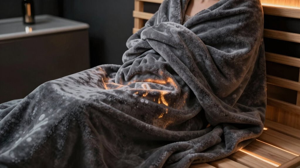 You should aim for 20 to 45 minutes when using an infrared sauna blanket, but listen to your body. As you relax, stay hydrated with water or electrolyte drinks—hydration tips are essential to prevent dehydration. During your session, you’ll notice skin benefits like improved circulation and glowing skin. Remember, consistency matters, so start with shorter sessions and gradually increase to maximize health benefits while keeping comfortable.