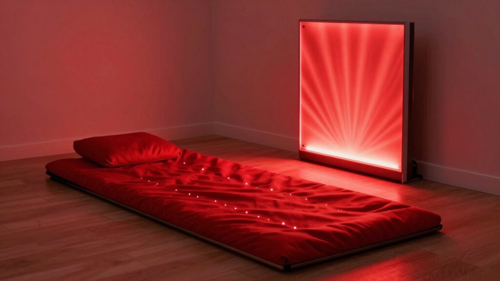 When choosing between a red light therapy mat and a panel, understanding their differences can help you make an informed decision. Both devices use red or near-infrared light to promote healing, reduce inflammation, and boost skin health. However, they differ considerably in how they deliver therapy, especially regarding skin absorption and device portability. Recognizing these distinctions can guarantee you pick the setup that best fits your lifestyle and goals.