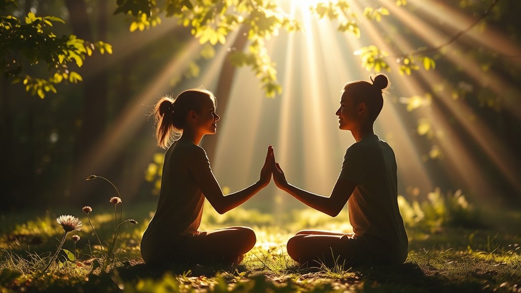 By nurturing mindful communication and shared spiritual practices, you can deepen your connection beyond surface conversations. Engaging fully in each moment, cultivating patience, compassion, and humility, creates a safe space for genuine vulnerability. Connecting through meditation, prayer, or spiritual rituals aligns your energies and reinforces your mutual growth. Over time, these intentional efforts transform your relationship into a soulful partnership rooted in trust and divine purpose. Continue exploring how these practices can elevate your bond even further.