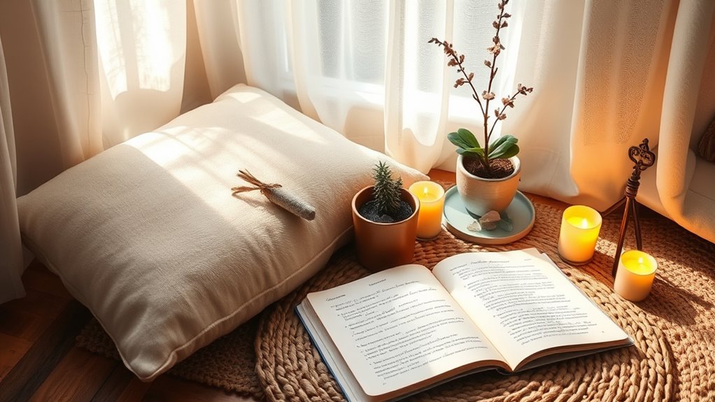 To nurture your soul through spiritual self-care, incorporate regular mindfulness practices like focused breathing, gentle meditation, or mindful observation into your daily routine. These techniques help you stay present, reduce stress, and connect more deeply with your core self. By creating intentional routines, you’ll foster inner peace, resilience, and a sense of purpose. Keep exploring these habits, and you’ll discover how they can transform your overall well-being and spiritual fulfillment.