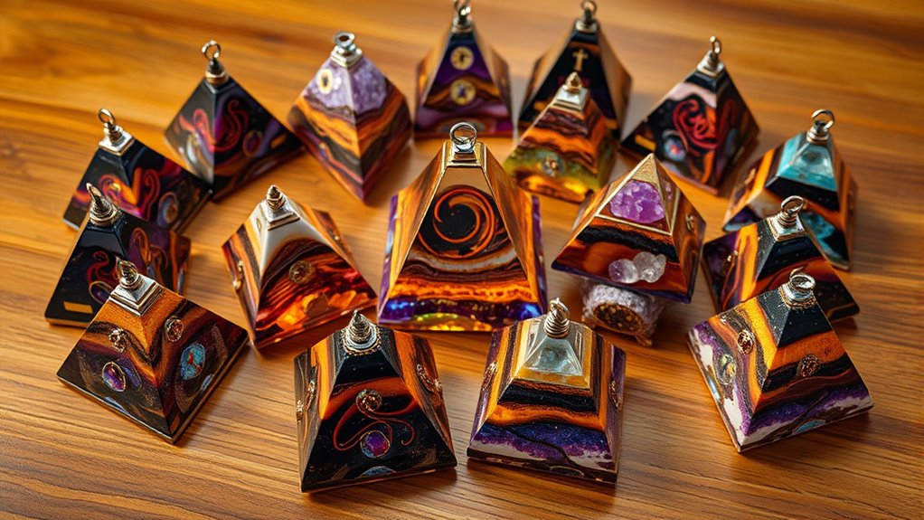 The types of crystals and stones used in energy pyramid orgonite considerably influence their energetic effects. Each stone carries unique vibrational properties that can target specific intentions. For example, amethyst promotes calmness and spiritual growth, while citrine attracts abundance and positivity. Black tourmaline and shungite are excellent for grounding and protection. The choice of stones also depends on their purpose; tiger’s eye boosts confidence and success, whereas obsidian offers strong protective energy. I prefer genuine, natural stones over synthetic or dyed alternatives because they retain authentic energetic qualities and durability. Additionally, the size, shape, and mineral composition of the stones impact how well they store, amplify, and transmit energy. Combining different crystals can create synergistic effects tailored to healing, protection, or manifesting specific goals.