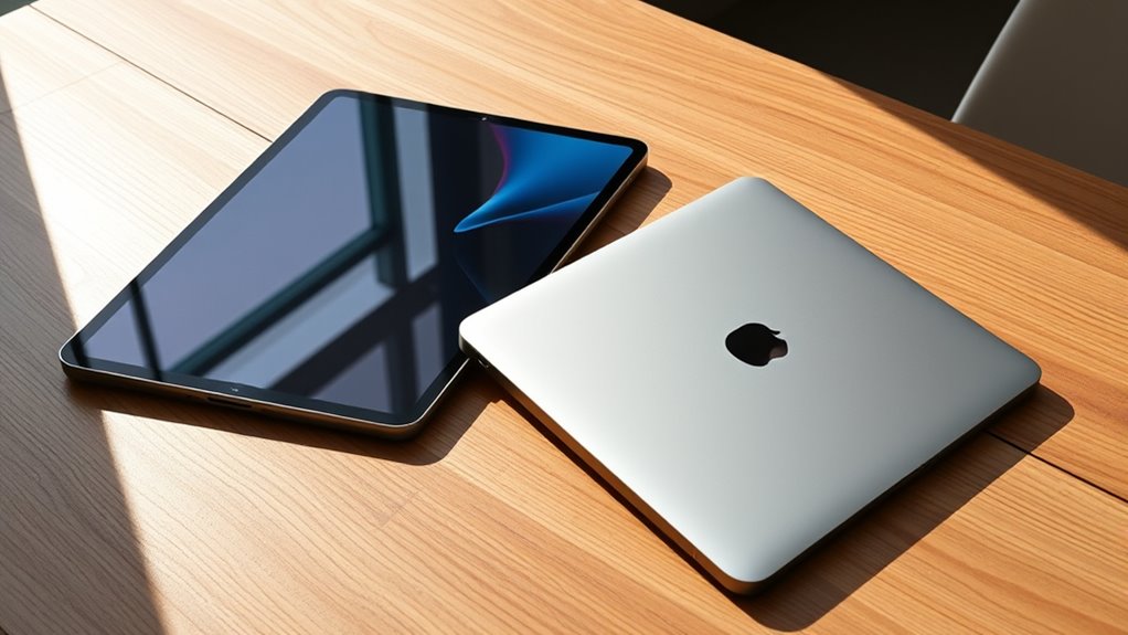 When choosing between the iPad Pro 2025 and the iPad Air for students, I consider performance, portability, and budget. The iPad Pro offers top-tier power with advanced multitasking capabilities, perfect for creative projects, but it’s pricier and a bit heavier. The iPad Air balances solid performance and portability at a lower cost, making it ideal for everyday tasks. If you want to know which one fits your needs best, keep exploring the details ahead.