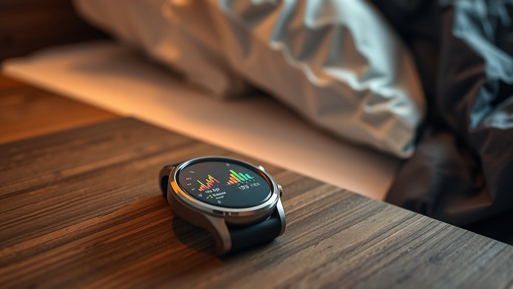 The accuracy of sleep data from smartwatches depends heavily on the quality of their sensors and algorithms. Advanced sensors like optical heart rate monitors and accelerometers detect movement and physiological signals, helping to distinguish sleep stages. Consistent calibration and sophisticated algorithms enhance the precision of classifying deep, light, and REM sleep. Devices that integrate multiple data points—such as heart rate variability and body temperature—offer more reliable insights. Proper placement and fit are vital; a snug but comfortable watch ensures good contact with the skin, improving data accuracy. External factors like environmental noise, light, and user activity can impact the readings, so choosing a device that accounts for these variables is indispensable for trustworthy sleep tracking.